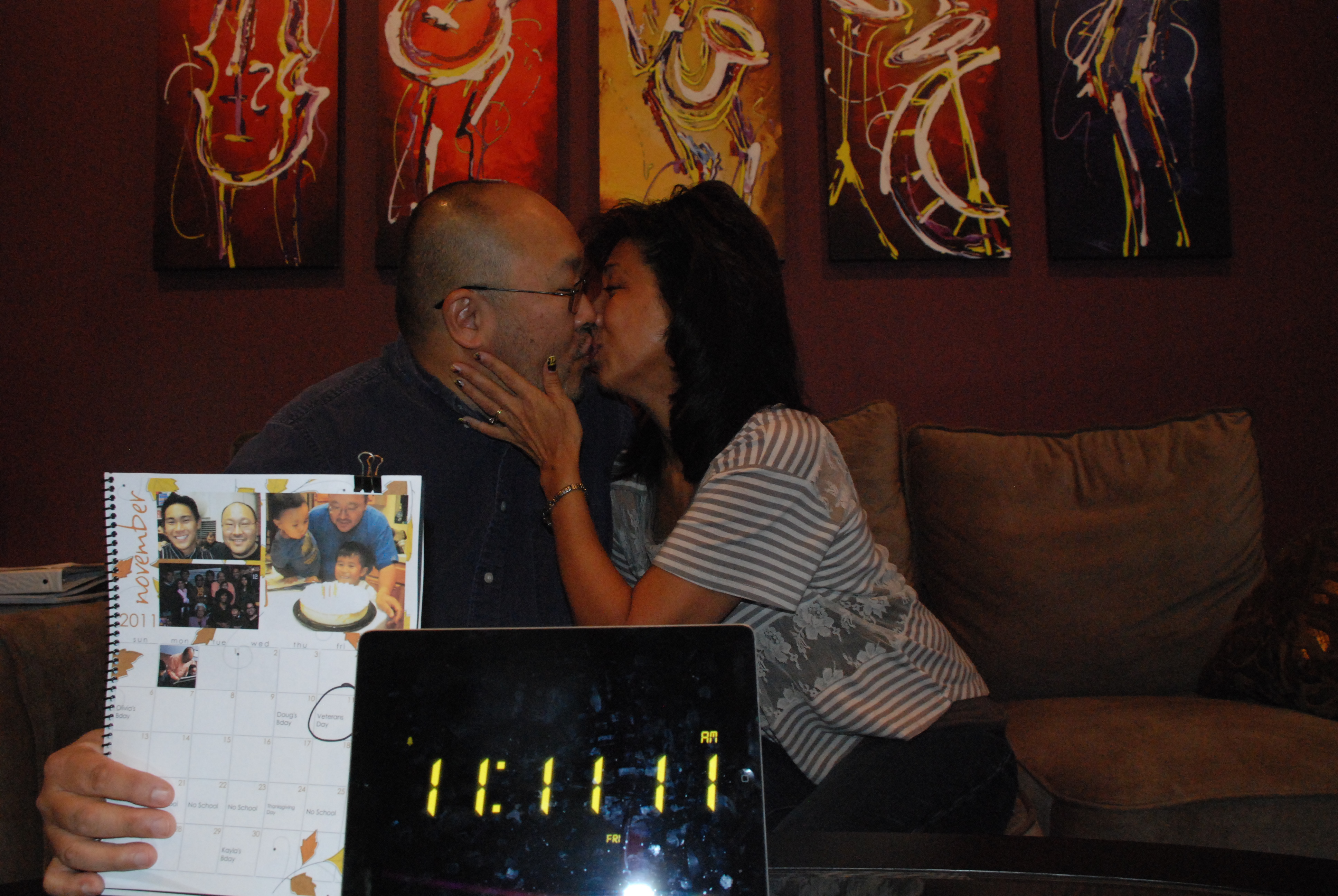 Another peculiar way we celebrate our relationship is at a special time during the day: 11:11 (am or pm). Whenever we are together and notice it is 11:11, we will give each other a smooch – to celebrate our “one-ness.” (We had a really BIG moment when we celebrated with a kiss at 11:11:11 on 11/11/11 – both, am and pm!)